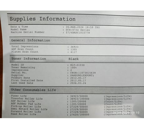 Шумновато работает и не понравилось, что определяется системой как D103S, а не D103L, а это катридж значит на 1500 стр. вместо 2500.
