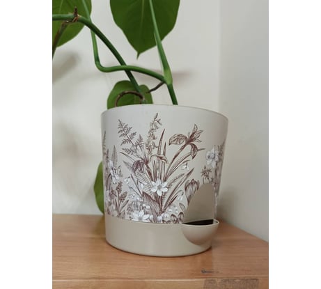 Отличный горшок, с прикорневым поливом. Смотрится хорошо при любом интерьере, за счет спокойной цветовой гаммы