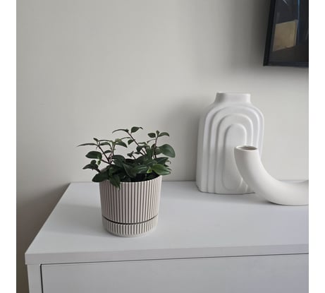 Кашпо состоит из двух частей: корпуса и поддона — используется для сбора лишней воды. На кашпо между корпусом и поддоном есть щель, благодаря которой лишняя вода испаряется и не застаивается.