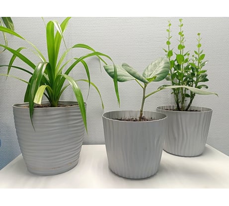 Кашпо укомплектовано вкладышем для регулировки в нём воды. Между кашпо и вкладышем есть пространство для воды, которая используется растениями при необходимости. Не нужен поддон, нет необходимости часто поливать цветы, корешки не подвергаются гниению.