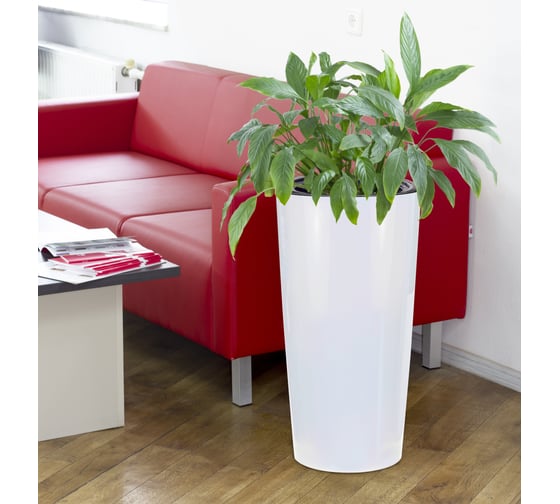 Кашпо круглое с вкладышем IDEA ПИЛАР 390х750 мм 23/69 л М 3088 используется для выращивания крупных растений и деревьев, подходит для зонирования пространства с помощью растений: квартиры-студии, ресторана, офисов «Open-space», коммерческих и торговых помещений. Комплектуется вкладышем, высота которого меньше высоты кашпо. Это позволяет экономить количество почвы и высаживать растения с любой корневой системой. Вкладыш, оснащён удобными ручками, которые позволяют перемещать растение без основного корпуса кашпо.