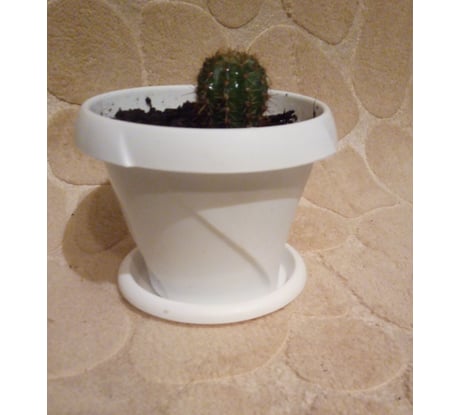 Отличный маленький горшочек . Плотный пластик, интересный дизайн . Отлично подходит для кактусят