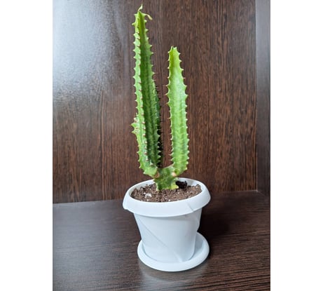 Отличный маленький горшочек . Плотный пластик, интересный дизайн . Отлично подходит для кактусят