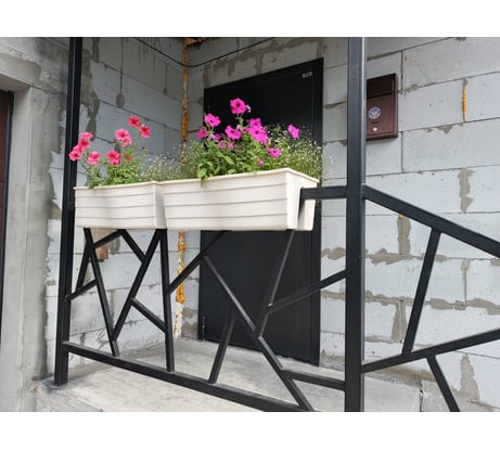 Кашпо легко установить на перила лестниц, ограждения открытых балконов, декоративные стенки. Специальные зажимы позволяют закрепить кашпо на разной ширине перила. Максимальная ширина рейлинга - до 5 см. Дно оснащено столбиками с отверстиями для отвода лишней воды во время дождя или при чрезмерном поливе.
