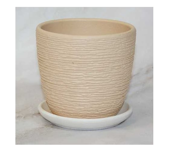 Кашпо Сады Аурики керамика, с поддоном, Гнездо бежевый крокус, d-9 см, h-9 см, 0.34 л 072074