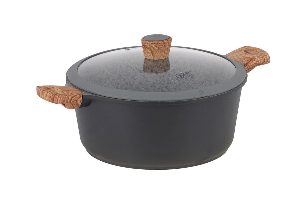 Кастрюля GIPFEL OLIVER 28x12.5 см, из литого алюминия, с индукционным дном, со стеклянной крышкой, c бакелитовой ручкой, с покрытием Soft-touch, 2.0/4.7 мм 0573