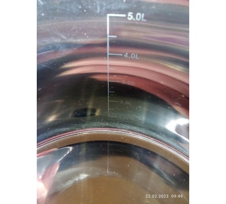 Прочитав отзыв, ещё в магазине её внимательно рассмотрела. Ни одного изъяна. Хорошо упакована в крепкую коробку. Внутри есть шкала в литрах, удобно.