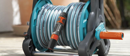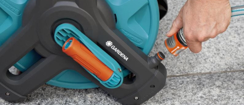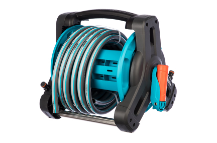 - Действуйте быстро Для разматывания и сматывания шланга используется складная ручка, что облегчает использование