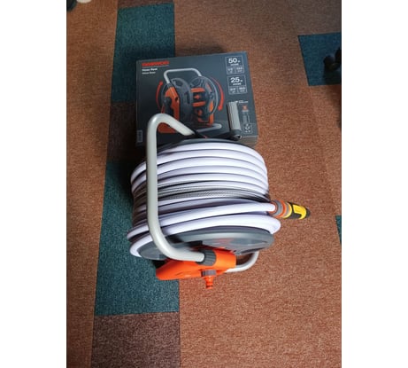 Хорошая катушка, добротно сделана, не развалится при активном использовании. Шланг наматывается легко, влезает вся длина.