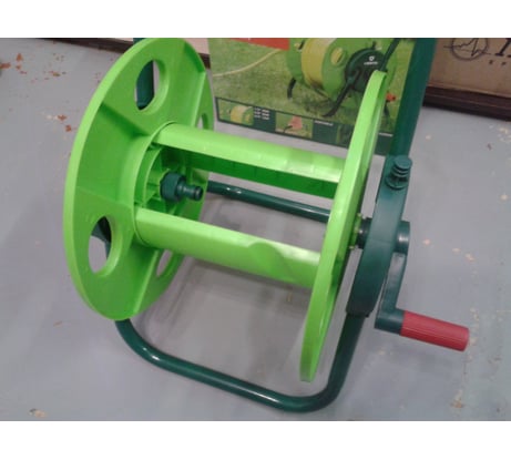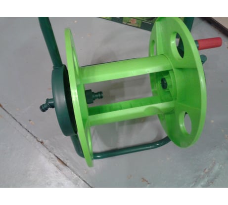Ручка дуга не жестко фиксируется, болтается. Хоть и некогда не выпадала, но по ощущениям очень некомфортно, постоянно эксплуатируешь очень осторожно и внимательно. Шланг 25мм наматывается 25мп ровно. Ручка для вращения барабана не функциональная и неудобная, каждый раз наматываю вручную (крутя сам барабан руками). В целом за год использования при не очень частом пользовании нормальная вещь для аккуратного хранения шланга за стоимость 2000-2500. Имею вторую катушку Гардена на колесах - она как раз очень удобная для частого использования.