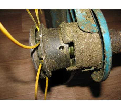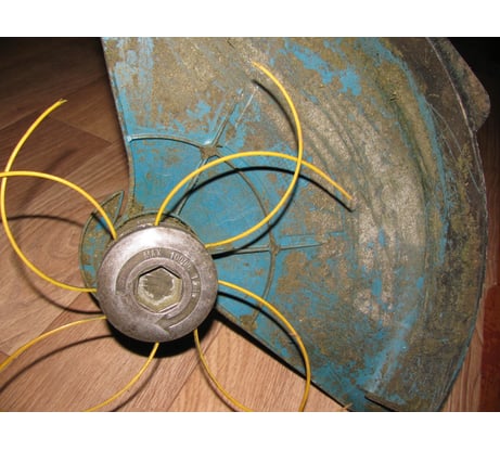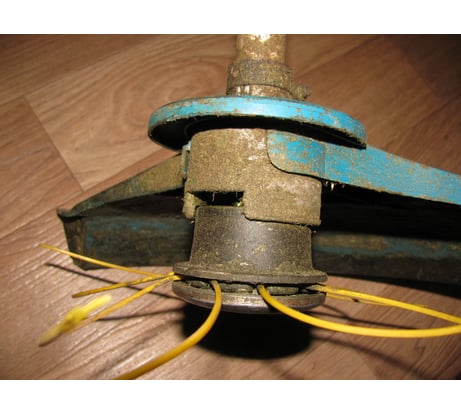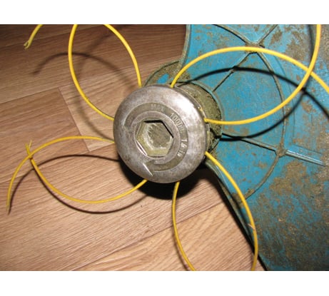 Приобретаете болт со шляпкой на 24 мм. Прикрепляете к резьбе перекладину или привариваете и всё. Что бы разбирать. Леска ставится от 2.4 до 3.5 и рубите всё что захотите.