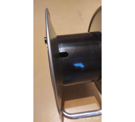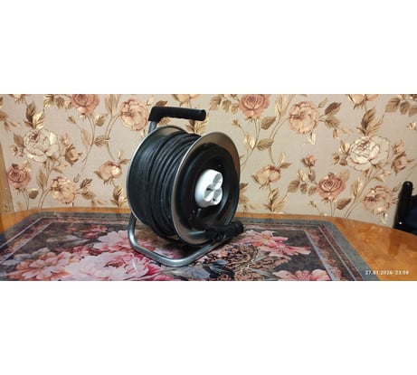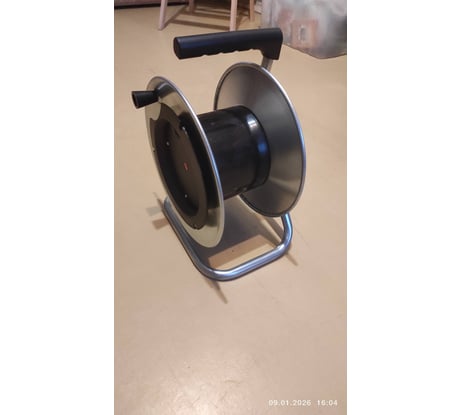 Хорошая катушка, металлические борта каснственно развальцованы по краям для защиты от порезов при хвате за саму катушку. Ручка большая, при этом конструкция удобная. Ручка для вращения самого барабана крупная и тоже хорошо сделана.Есть куда провести кабель.