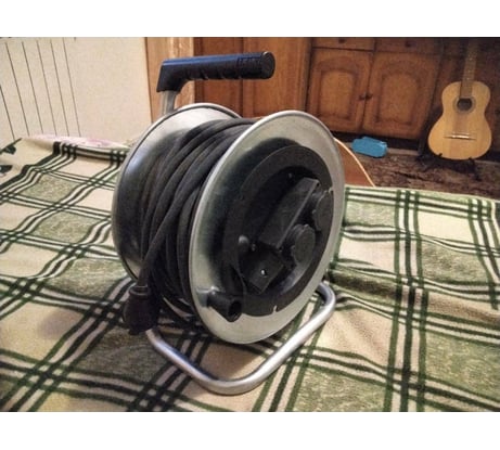 Всё ясно и понятно. Намотал на катушку готовый удлиннитель 30 метров 2,5*3. катушка разбирается, провод закрепляется в специально отведённом месте.