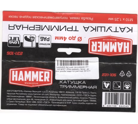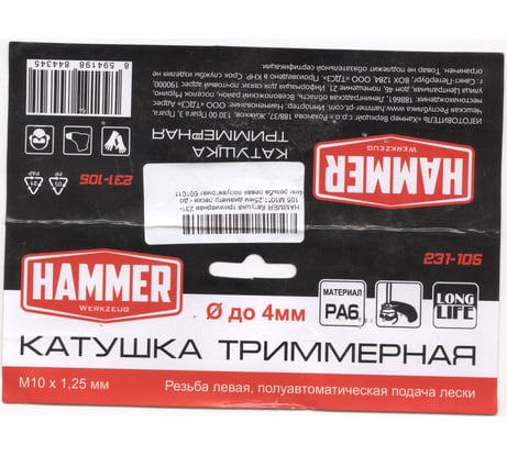 Отзывы о катушке триммерной Hammer 231-105 M10х1.25 мм; левая резьба 601011