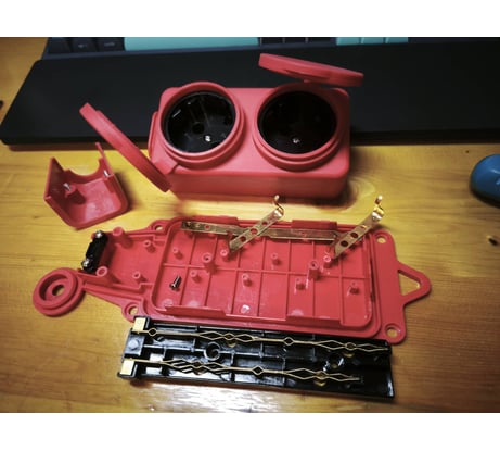 Провод влезет максимум 2,5. Одного винта в зажиме не оказалось. Рука-лицо. Придётся по закромам копаться. Сколько проживёт карболитовая подложка в плане фиксации контактных пластин - уж больно тонкая пластмасска.