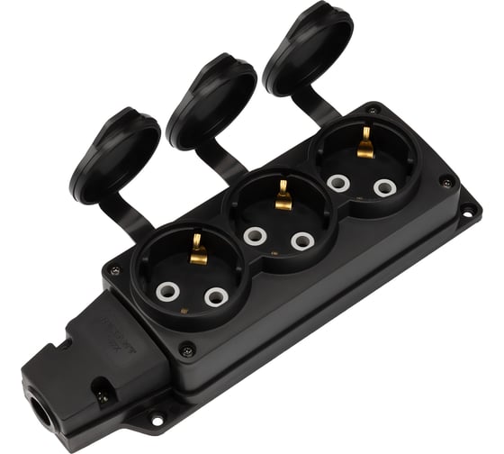 Каучуковая колодка влагозащищенная REXANT 3 гнезда COMPACT с/з 16А IP54 черная 111-223