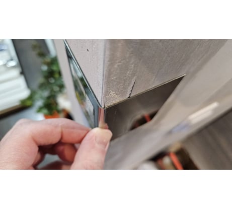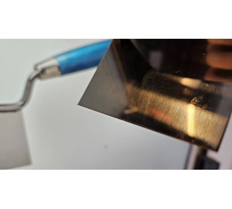 Фото не соответствует действительности: на снимке угол прямой, тогда как в реальности он скругленный (примерно R2–3 мм). Из-за скругленного угла кельмы невозможно выровнять этот участок, остаются острые заусенцы. Следы точечной сварки на рабочей поверхности. Считаю цену завышенной. В мусор.