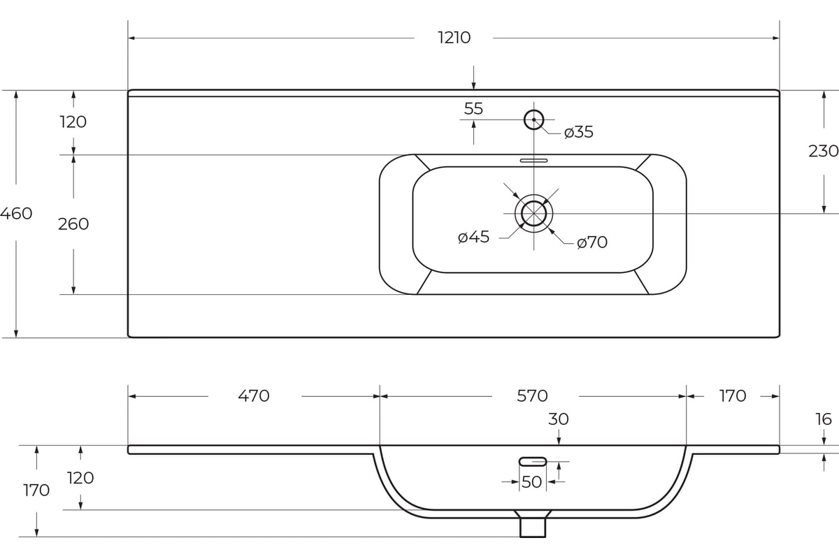 Форма раковины:прямоугольная