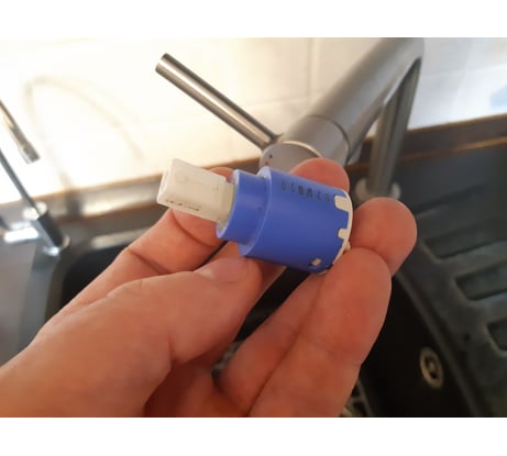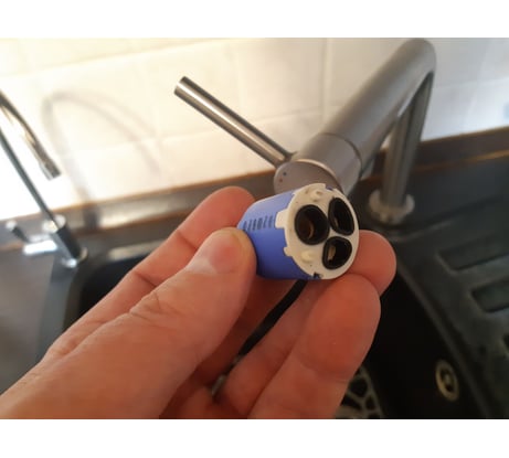 Редкий размер картриджа, сложно найти. У этого картриджа напор воды из смесителя посильнее, чем у старого китайского.