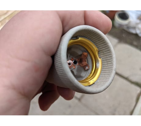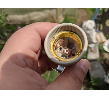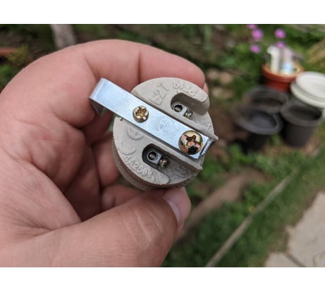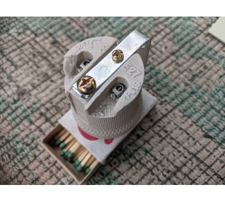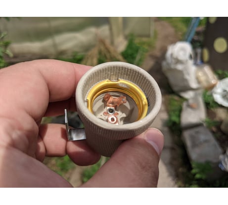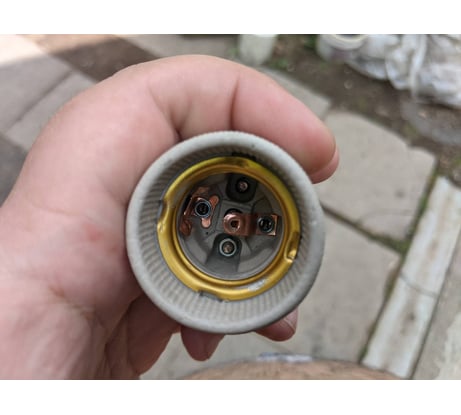 Металл контактов с цоколем е27 - это крашенный алюминий. На фото я специально отвёрткой нанес царапины на все 3 контакта. Ещё не использовал.