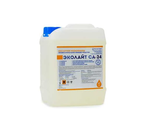 Кислотное малопенное средство для удаления сложных минерально-органических отложений, для очистки тары Чистый Урал Эколайт СА-24 10л 4631175913794