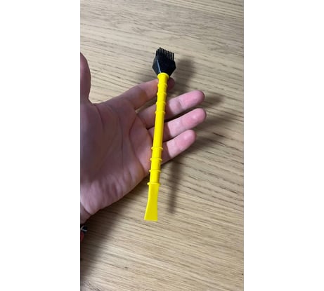 Легко разносит клей по поверхности. С торца ручки есть очень удобный шпателёк для снятия излишков клея. Отлично моется в холодной воде. Говорят легко очищается даже если клей присохнет.