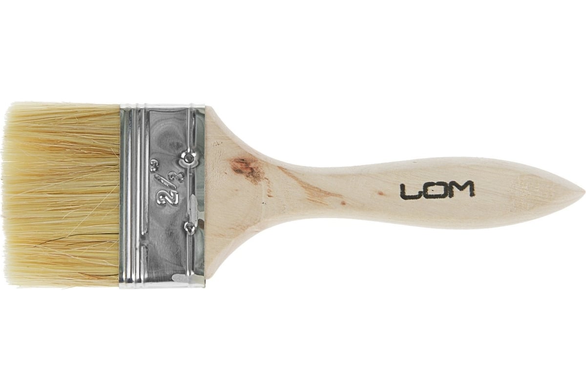 Кисть плоская от марки «ЛОМ» предназначена для нанесения красок, эмалей и лака на различные поверхности. Натуральная щетина подходит для равномерного распределения эмали и густых лакокрасочных покрытий без подтёков. Плоская форма кисти подходит для окрашивания любых поверхностей. Деревянная рукоятка обеспечит удобством во время работы.