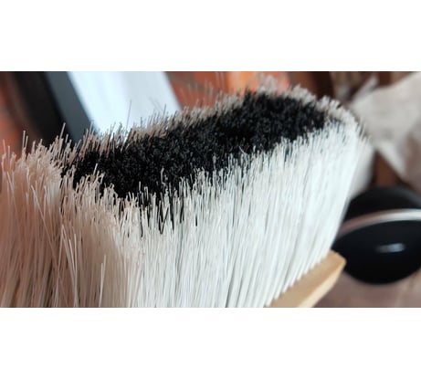На фотографиях товара скрыта брешь в щетине. Ворс отсутствует в месте крепления ручки на основании. Работать с жидким материалом неудобно: ворс жёсткий и при нанесении разбрызгивает материал.