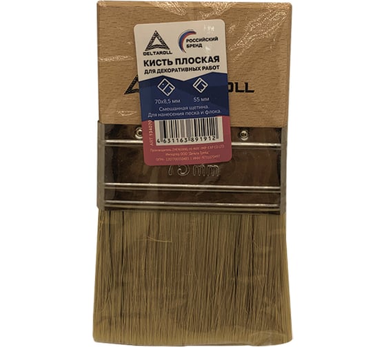 Кисть плоская испанка для декоративных работ, 70x8.5 мм, DeltaRoll 134070