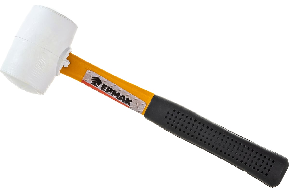 Киянка ЕРМАК белая резина, фибергласовая обрезиненная рукоятка 225гр 662-012 подойдет для правки листового металла. Инструмент не скользит в ладонях.