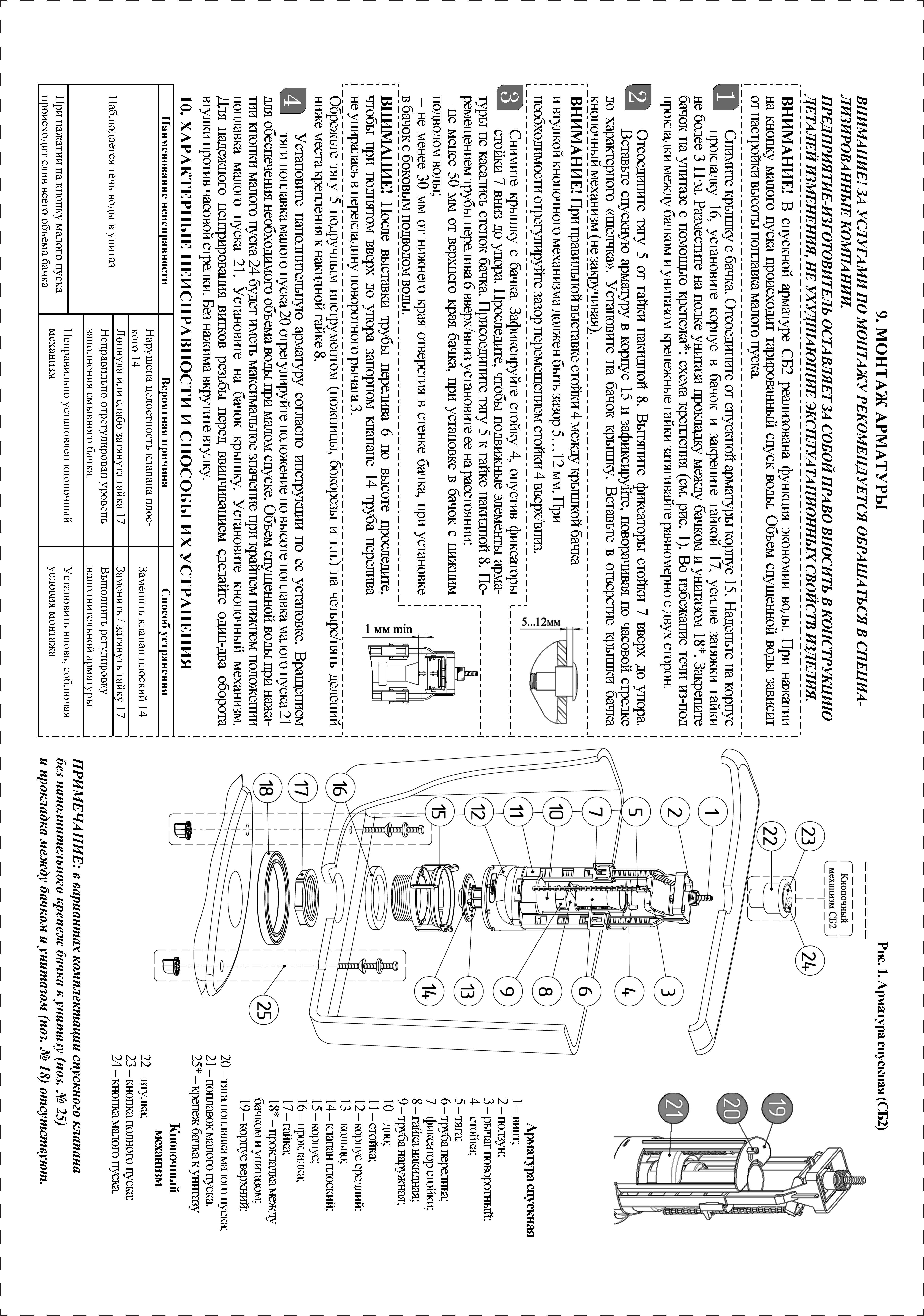 Комплект арматуры изготовлен в соответствии с требованиями ГОСТ 21485-2016 ("Бачки смывные и арматура к ним")