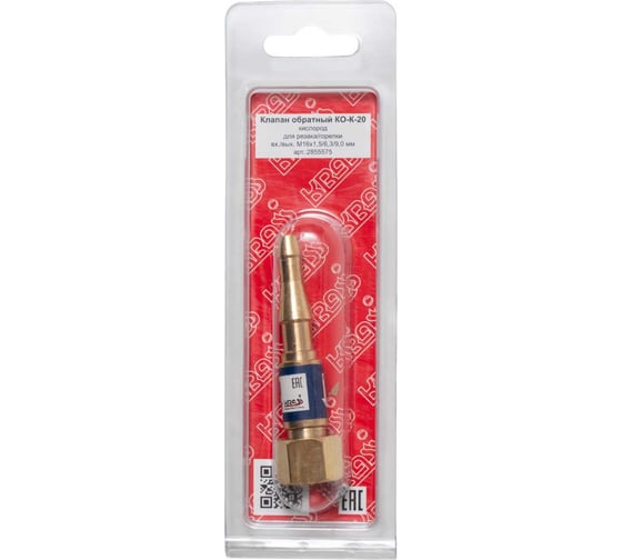 Обратный клапан КО-К-20 KRASS 2855575 служит для устранения прохождения обратного удара пламени в баллон, что делает процесс газосварочных работ более надежным и безопасным. Корпус изделия выполнен из высокопрочного материала, не подверженного ударным воздействиям, а также неблагоприятному влиянию рабочего газа. Небольшие размеры и малый вес обеспечивают удобство при хранении и транспортировке приспособления. Устанавливается на вход резака/горелки.