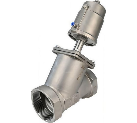 Клапан отсечной пневматический DN.ru 316-304-PT Ду20 Ру25, резьбовой, Y-образный, привод нержавеющая сталь D490-00074
