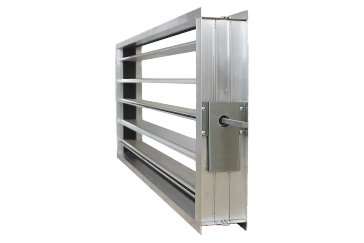 Клапан состоит из прямоугольного корпуса и установленных в него жалюзи, которые через систему зубчатых колес поворачиваются на требуемый угол. В качестве материала для изготовления корпуса и жалюзи применяются соответствующие алюминиевые профили. Конструктивно клапан исполняется только с прямоугольным сечением. Плотность закрытия заслонок достигается применением резиновых уплотнителей, находящихся в пазах корпуса и жалюзи. Прилегание жалюзи с боковыми стенками корпуса уплотняется пластиковыми вставками, служащих одновременно опорами подшипников скольжения жалюзи. При ручном регулировании, предусмотрена возможность фиксации заслонки в необходимом положении. Подпружиненный ручной привод без гайки-барашка обеспечивает фиксированные положения лопаток каждые 9˚ 30΄. КВАЛ может комплектоваться электромеханическим приводомс возвратной пружиной или реверсивным без возвратной пружины. Обозначение клапана: КВАЛ АхВ- с указанием типа привода. Монтаж на воздуховоды выполняется через фланцевое соединение.