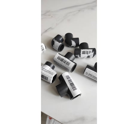 На каждом отводе наклеен штрихкод, приклеен намертво. Молодцы!