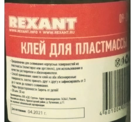 Отзывы о клее для пластмассы REXANT 30 мл, флакон 09-3967
