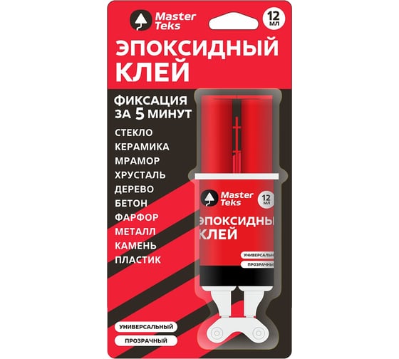 Клей эпоксидный MASTERTEKS двухкомпонентный, 12 мл, прозрачный 279712