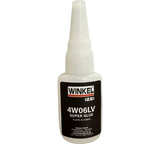 WINKEL PRO 4W06 - моментальный цианоакрилатный клей низкой вязкости. Разработан для склеивания материалов, требующих высокой эластичности, таких как пластики и резины. Подходит для склеивания очень широкого спектра материалов, включая кислые поверхности и некоторые пористые, где требуется быстрое склеивание. Обладает улучшенной ударопрочностью и высокой эластичностью.