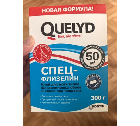 Клей обойный Bostik QUELYD СПЕЦ-ФЛИЗЕЛИН мне посоветовал купить работник магазина, когда я заказывал здесь всё для поклейки обоев. Если честно, то я вообще не знал о существовании такого клея, да и вообще не большой знаток такого рода товаров. именно поэтому полностью доверился профессионалам и последовал их совету. И вот уже мои обои поклеены. Какой же вывод. Клей действительно классный. И клеить им -одно удовольствие. Мои флизелиновые обои поклеились отлично, держатся прочно.Клеить им легко, ложится ровно, имеет прозрачный после нанесения. К тому же этот клей с антигрибковым эффектом. Спасибо.