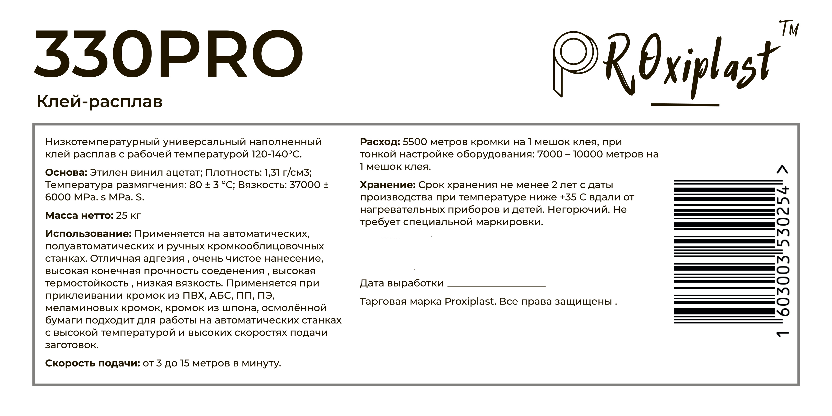 Клей расплав Низкотемпературный (120-140°С) PROXIPLAST 330PRO
