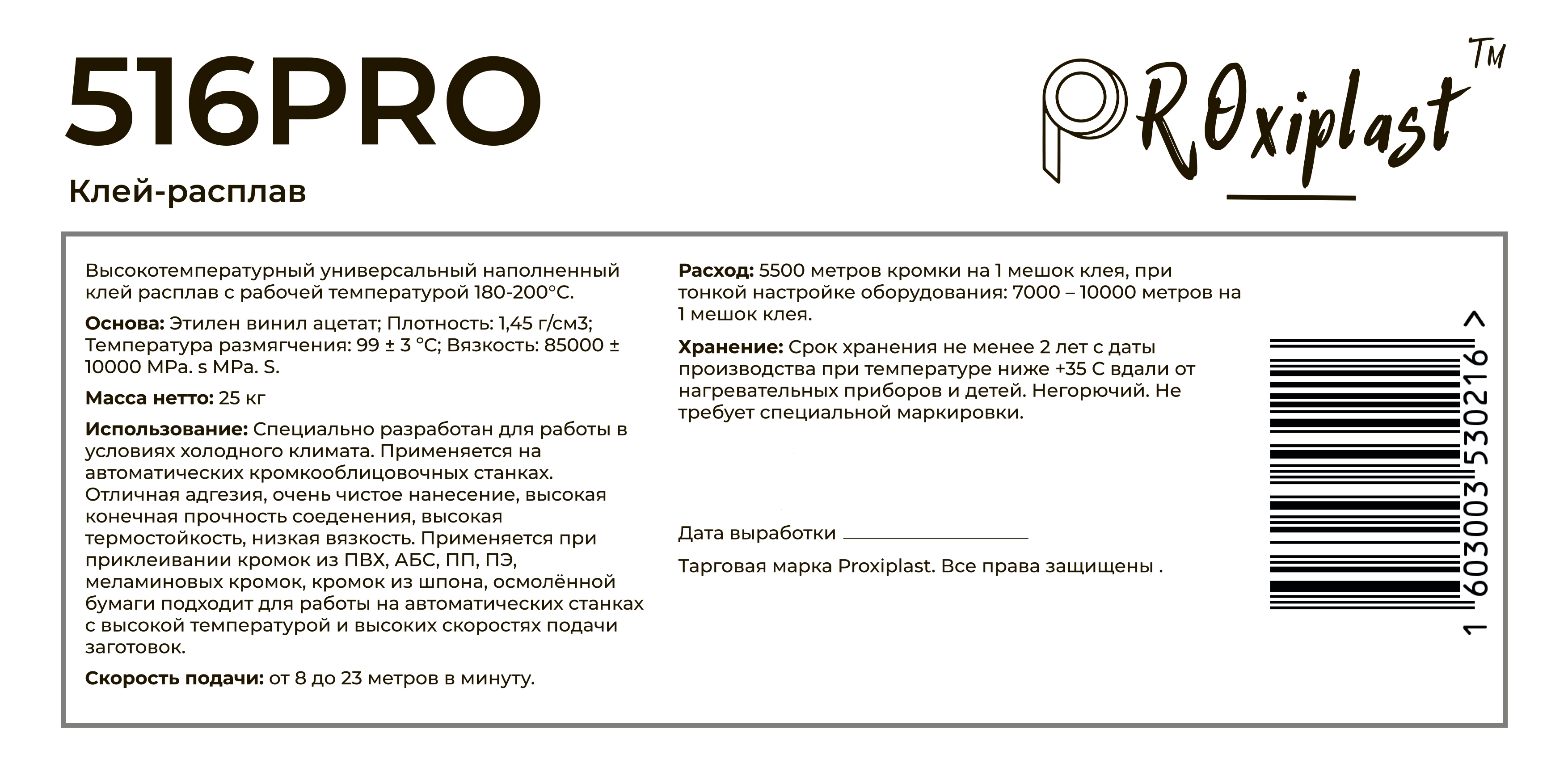 Клей расплав Высокотемпературный (180-200°С) PROXIPLAST 516PRO