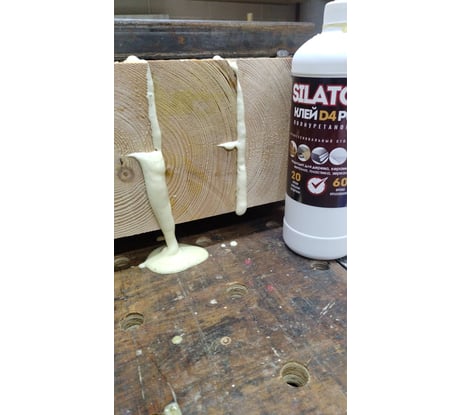 Хорошо скливает и заполняет все щели - использовал для проклейки плит дсп (квик дек). 20 минут устойчивости до активации - можно успеть нанести на большую длину без спешки и спокойно состыковать и даже поправить. Пенится - излишки вылезают из щелей наружу и застывают в виде пенки, впоследствии они легко убираются стамеской или ножом.