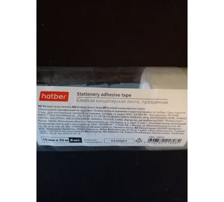 Технические характеристики клейкой ленты Hatber 19ммх33м без штрихкода