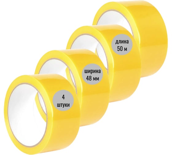 Клейкая лента (скотч) ООО Пломба.Ру 48мм х 50м, желтый, 4шт в упак, 700054 - специально окрашенная упаковочная лента с клеевым слоем с одной стороны.