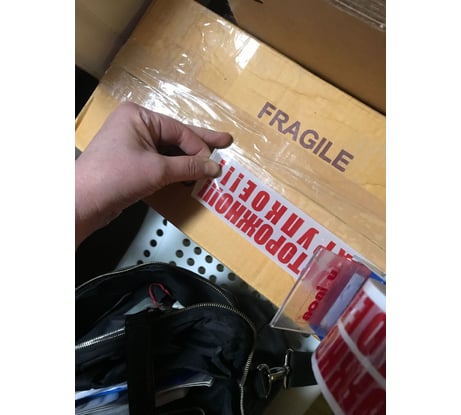 Специальная предостерегающая лента с нанесенной соответствующей надписью. Позволяет промаркировать наиболее важные, хрупкие товары и коробки, тем самым оградить упакованные предметы от порчи вследствие некорректного обращения при погрузке-разгрузке.