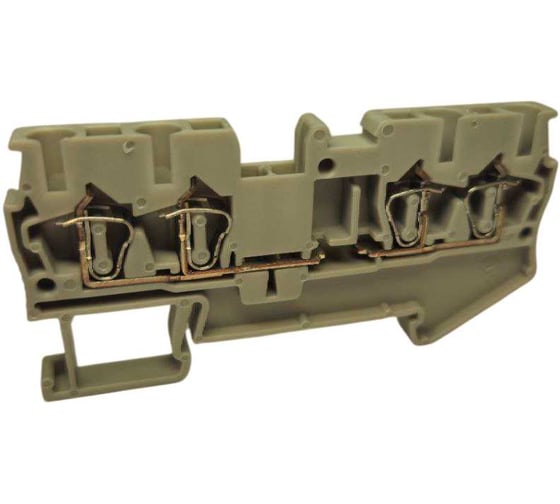 Клемма для подключения модулей на Din-рейку, 4 точки подключения в клемме, тип фиксации провода: пружинный, номинальное сечение: 2,5 мм кв., 28A, 400V, цвет: серый