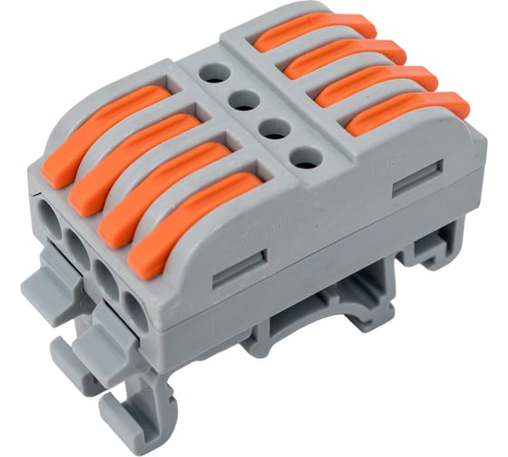 Универсальная проходная изолированная клемма с возможностью монтажа на DIN-рейку предназначена для многоразового подключения любых типов медных проводников: одножильных и многожильных. Зажим проводов в клемме осуществляется при помощи рычагов. Специальное технологическое отверстие на корпусе клеммы предназначено для проверки соединения тестером-пробником или щупом мультиметра. Элемент фиксации к DIN-рейке съемный. Клеммы обеспечивают простой и быстрый монтаж.