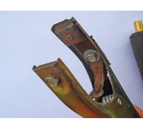 Клемма заземления для соединения сварочного аппарата с землей. Максимальный сварочный ток 500 А. На первое время для наработки навыков сгодится.