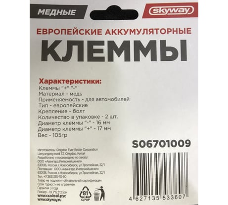 Отзывы о клеммах SKYWAY медных европейских 009 S06701009