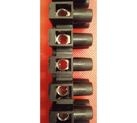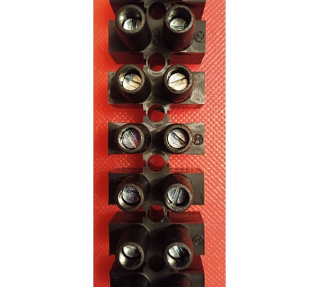 Хороший клеммник, плотная пластмасса. НШвИ 2.5 на 2 провода входит, но НШвИ 4 уже нет. Болты закручиваются хорошо, надежно.